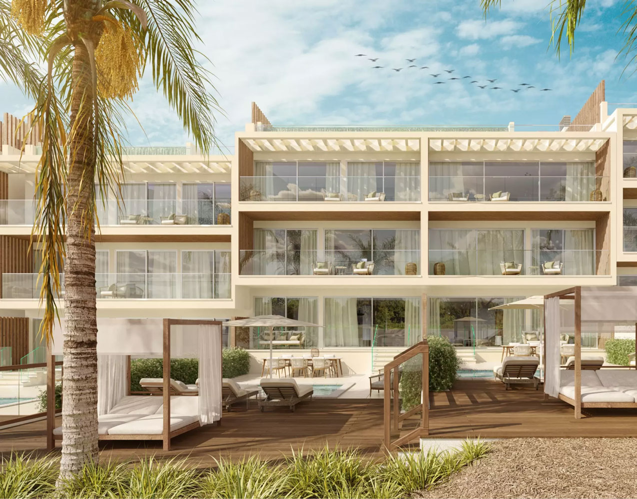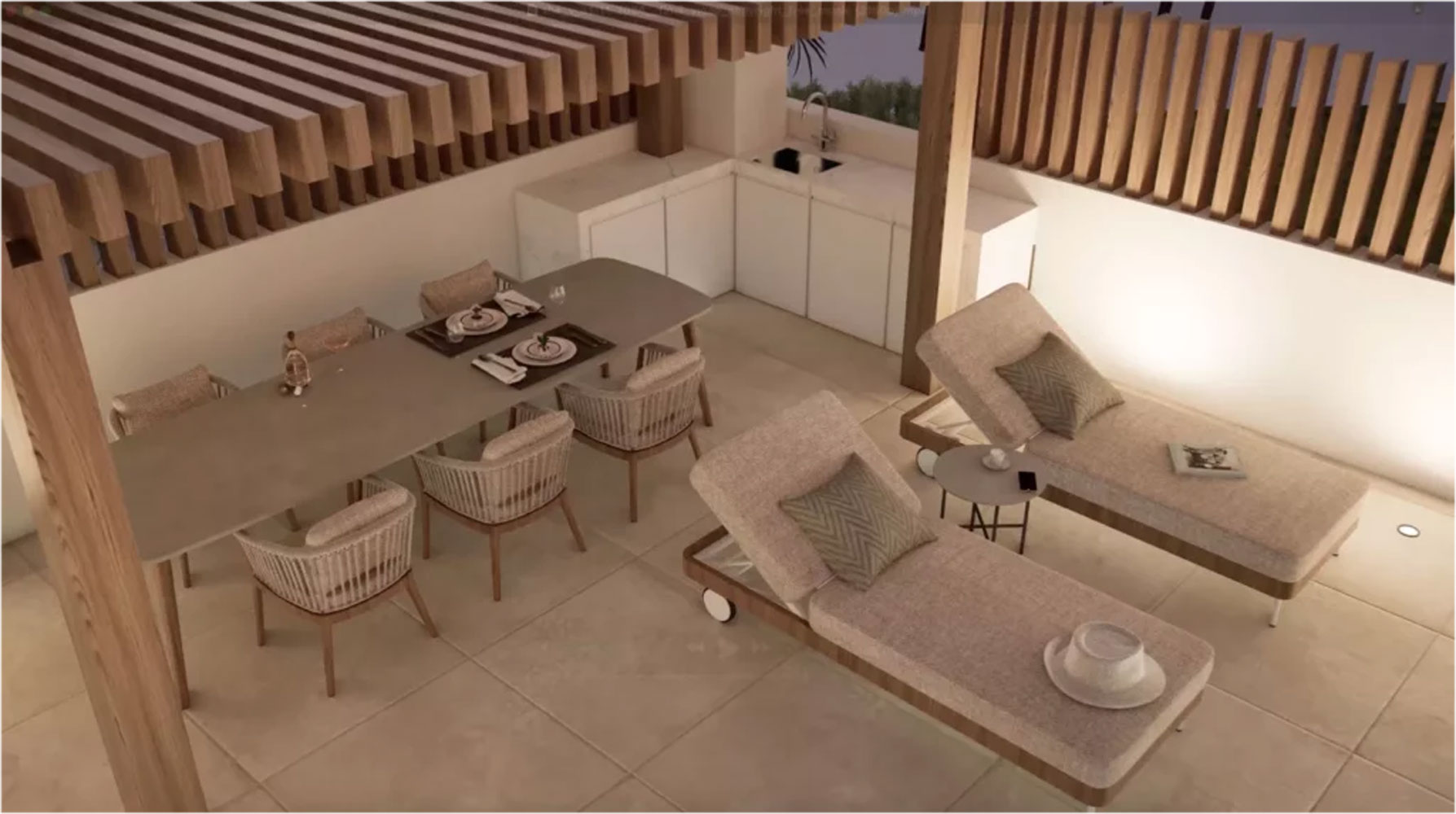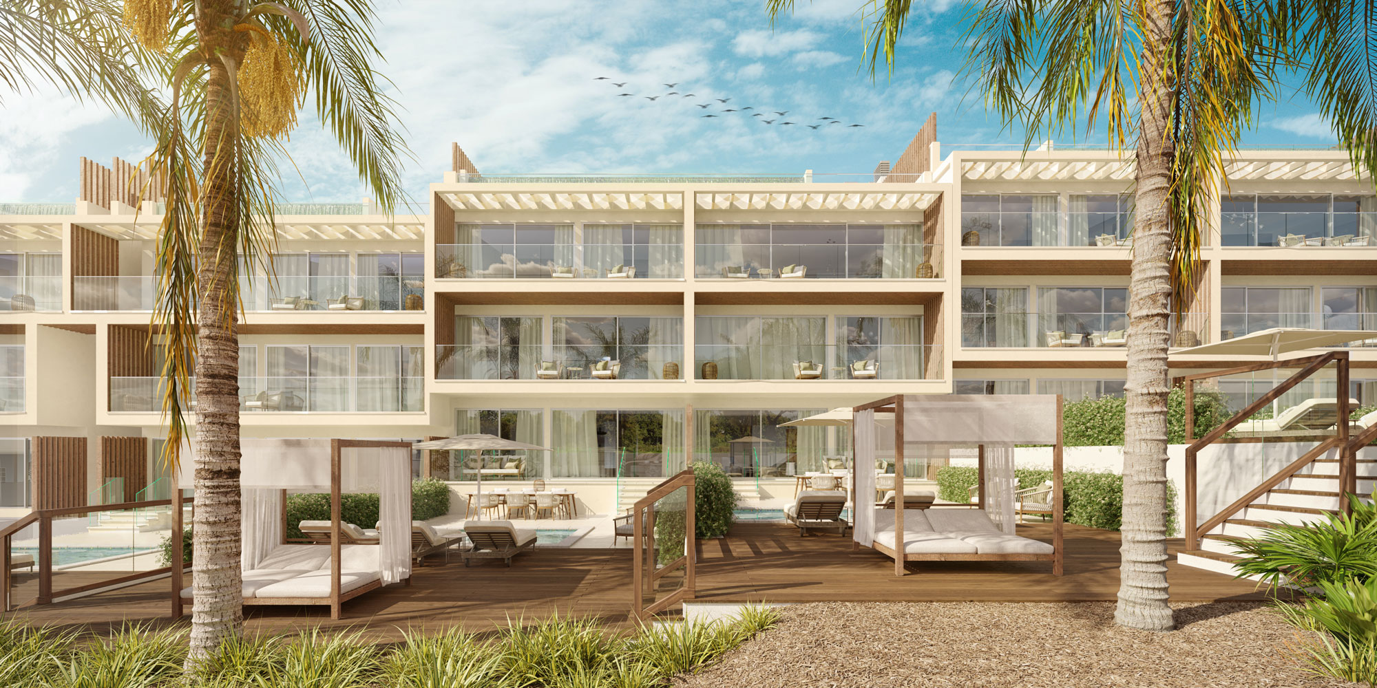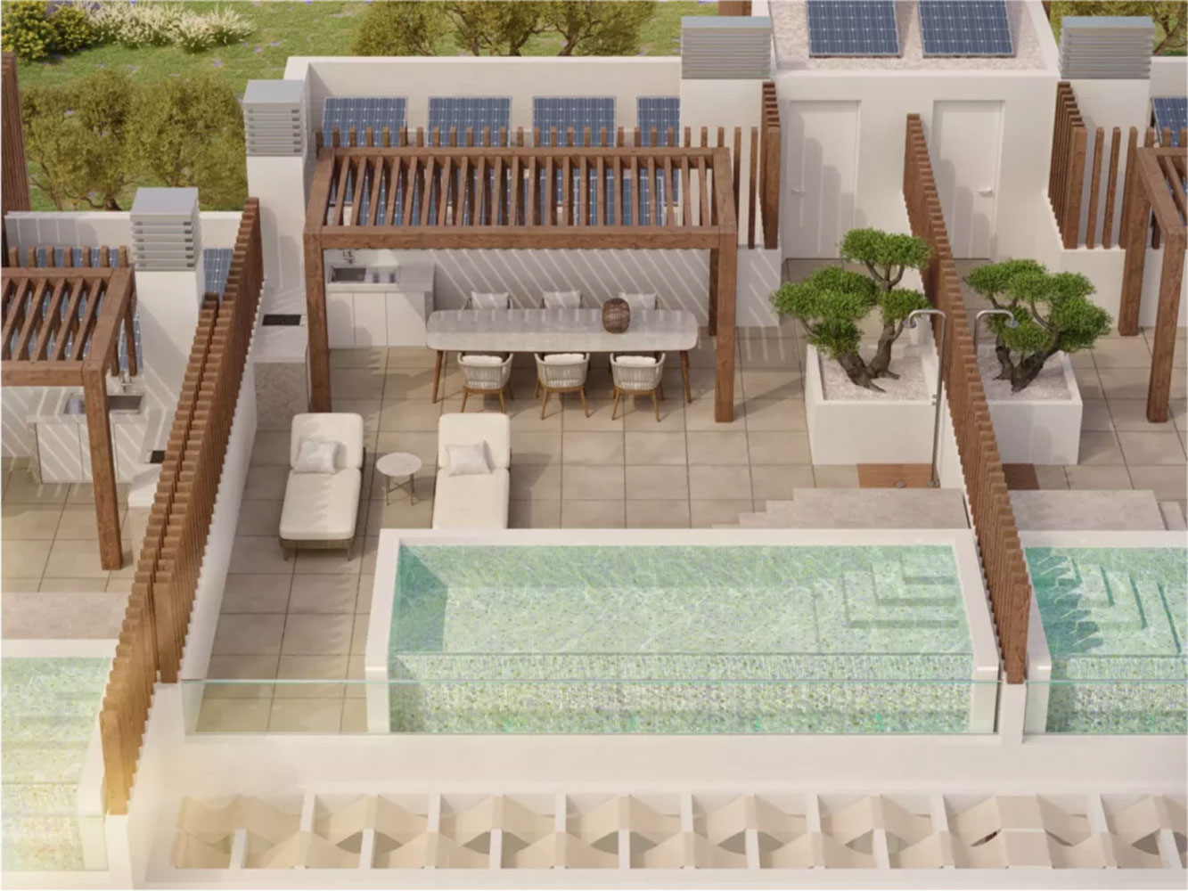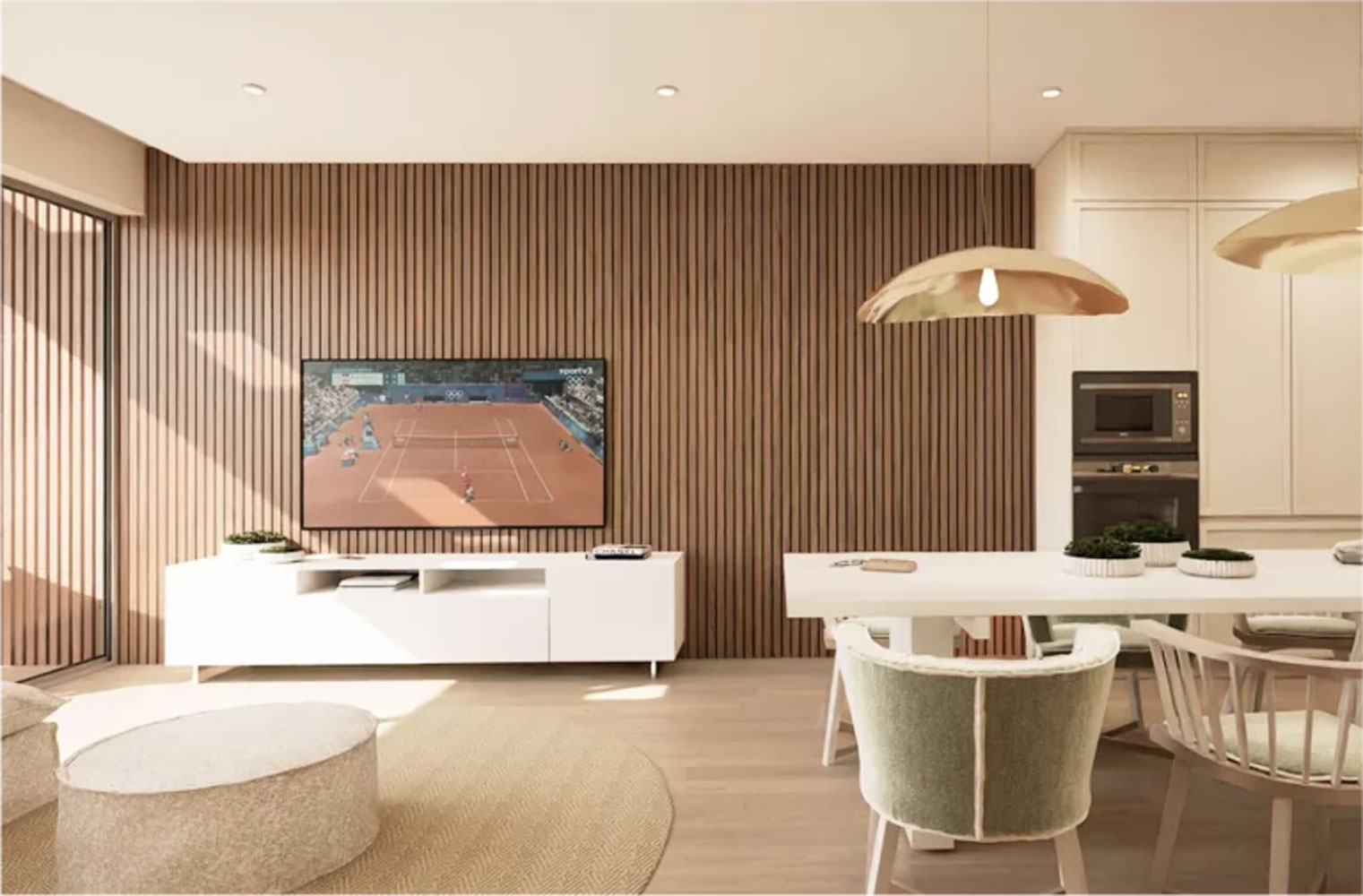 Condomínio com 21 apartamentos, estacionamento em cave, jardim e piscinas.
