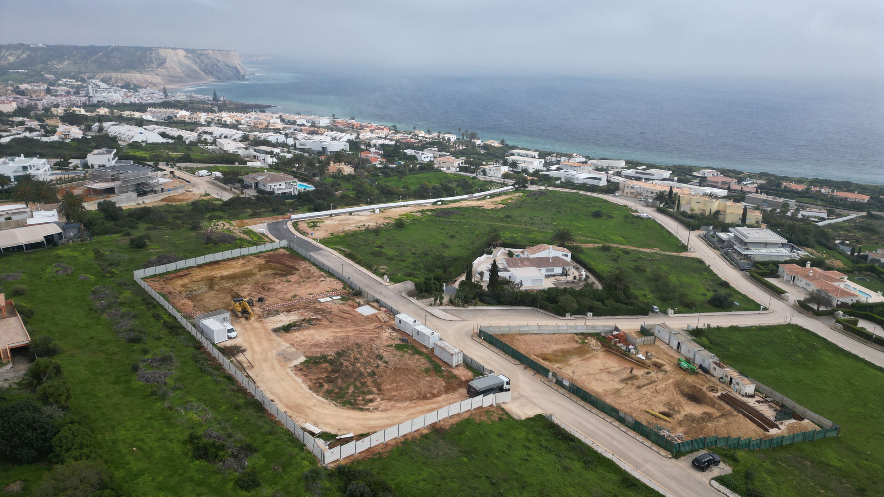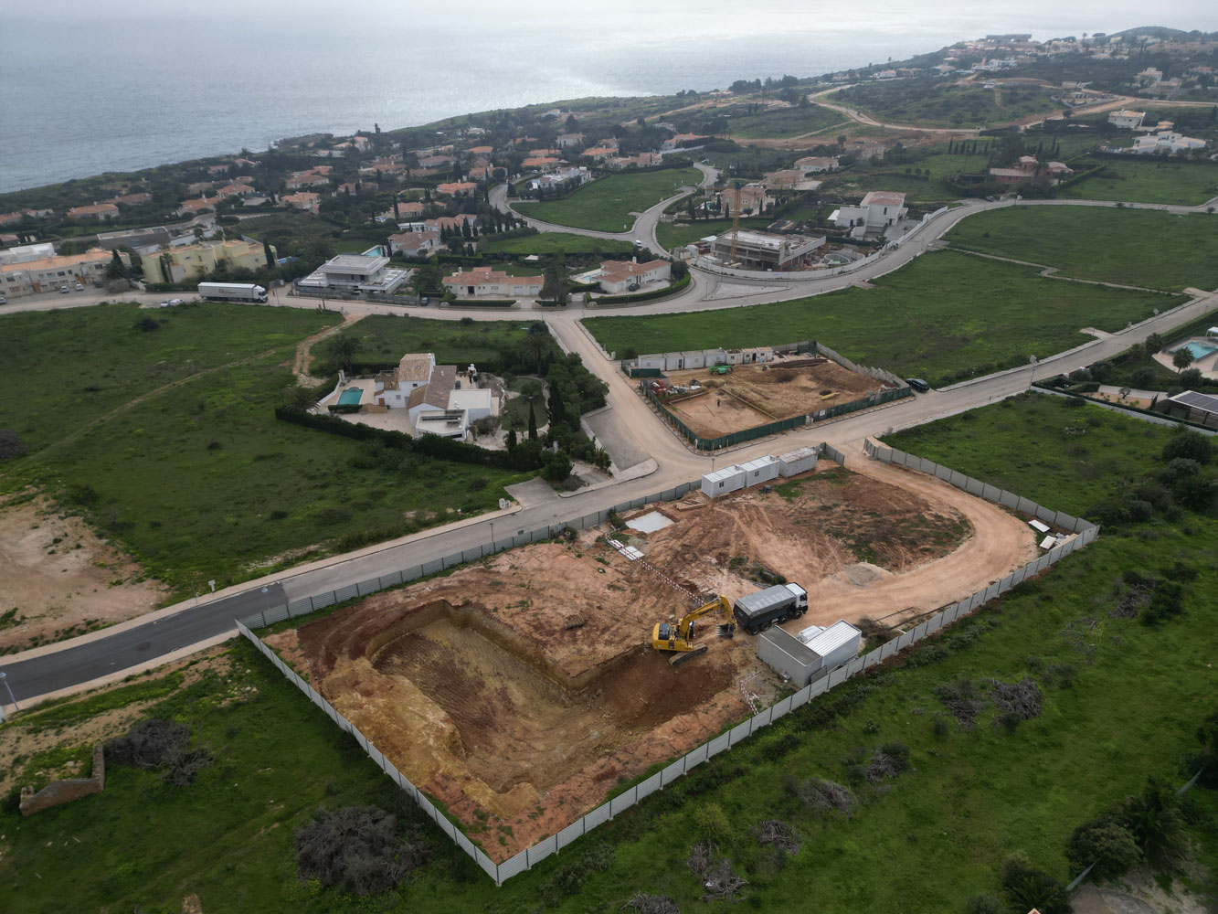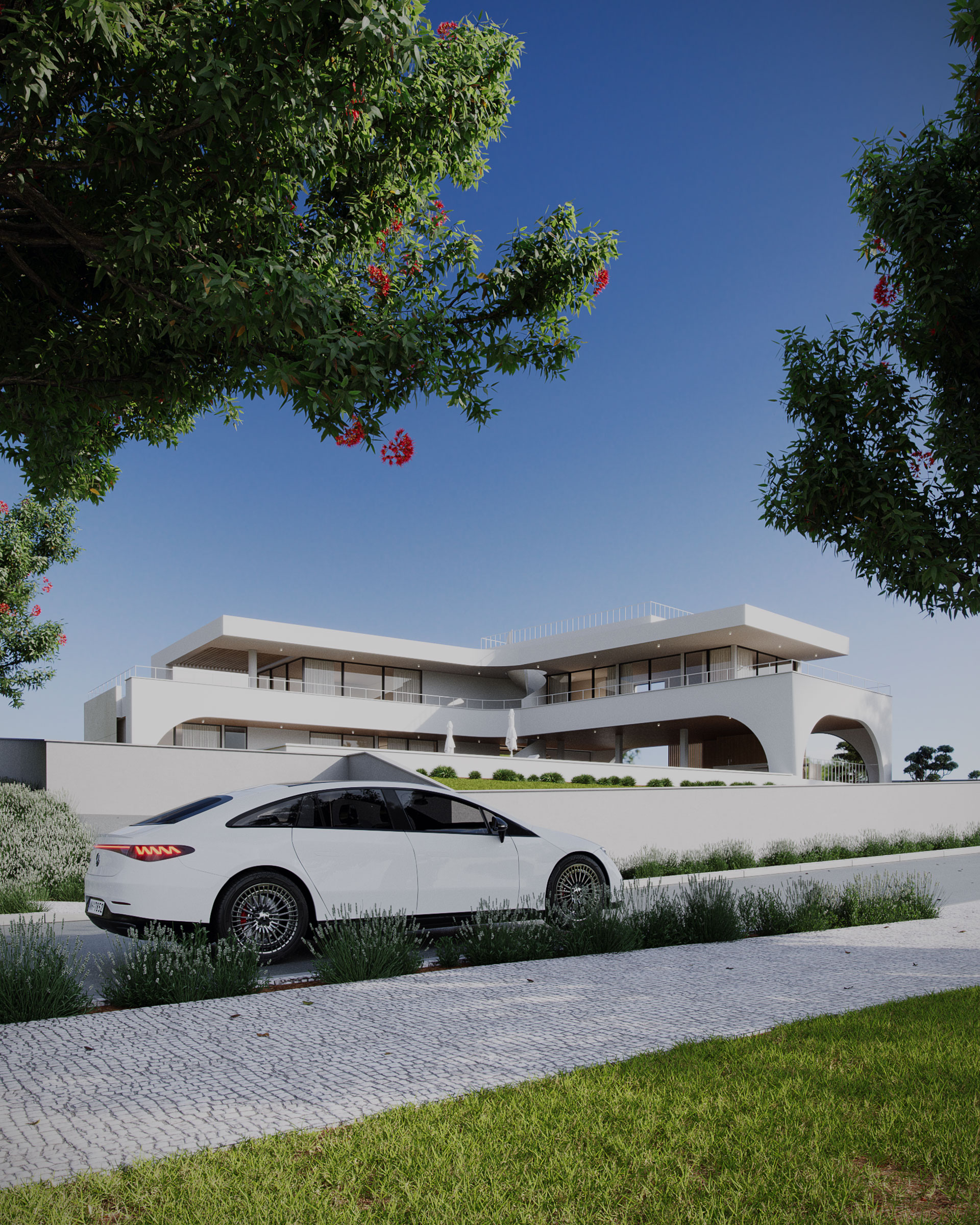 Construção de moradia unifamiliar com jardim e piscina, em loteamento urbano.